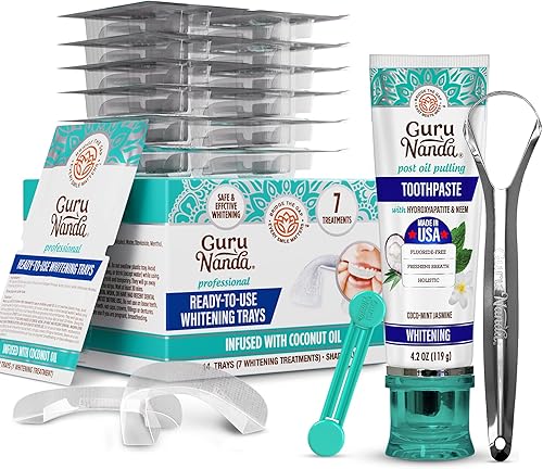 DESIGNED FOR ENHANCED WHITENING: Meet the next revolution in teeth whitening—GuruNanda’s Ready-to-Use, prefilled whitening trays. No guesswork, no mess—just effective action on surface stains for a visibly brighter smile with every use.